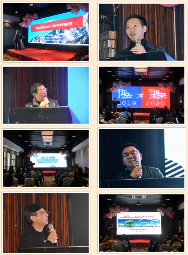 In the afternoon, once a year's annual summary meeting was held in Wuyi hall. Lu Huifeng, general manager of AMKS, Li Zhiming, head of Jinhua Tianyi environmental purification agent, Jiang Jianhui, head of Jinhua Flanders environmental protection, and Zhu Junlei, head of Jinhua Chengyi environmental protection, respectively reviewed the work in 2019.