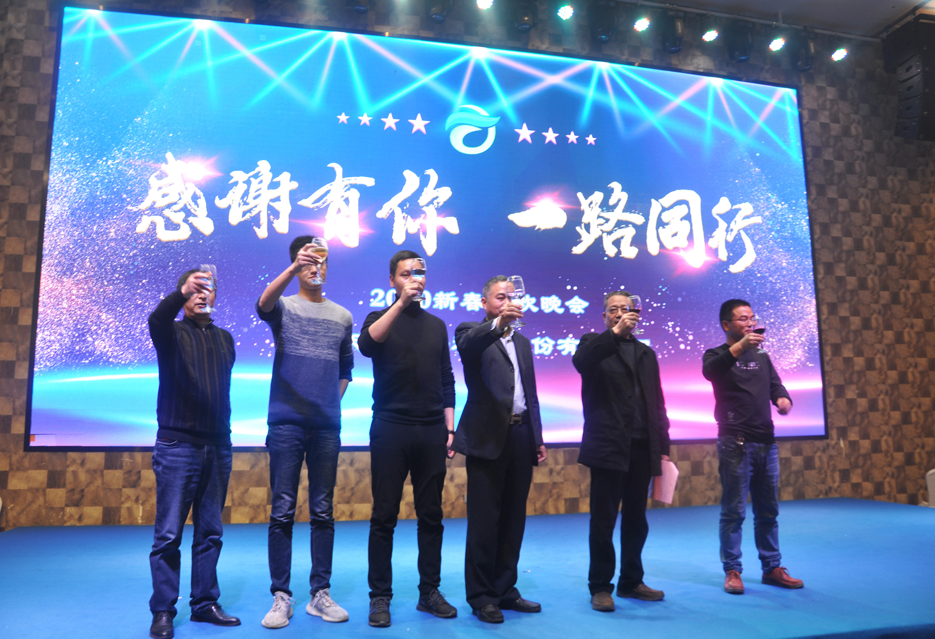 The chairman of the board of directors gave a speech and toast to everyone. All leaders of the company raised their glasses to announce the official start of the Spring Festival Gala with warm wine.