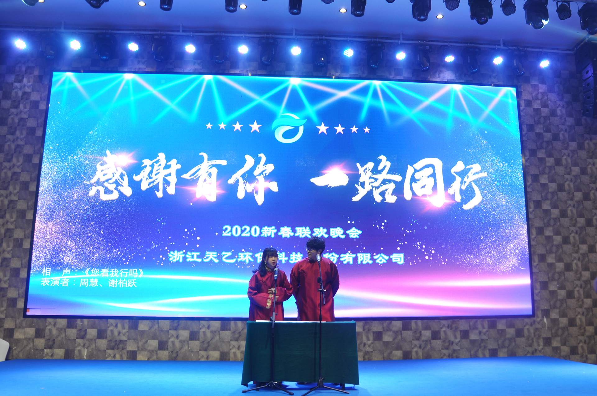 In the evening, in Jinhua hall, the New Year Party of Tianyi environmental protection & AMKS was held on time.